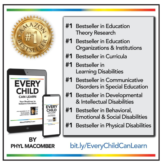 Phyl Macomber’s latest book, Every Child Can Learn: Your Roadmap to Inclusive Education, was an Amazon #1 bestseller in eight educational categories. It is a research-based “How-To” guide for all-encompassing education when teaching students of all abilities – from gifted to special needs – and has been referred to as “common sense education” by educators from around the globe.