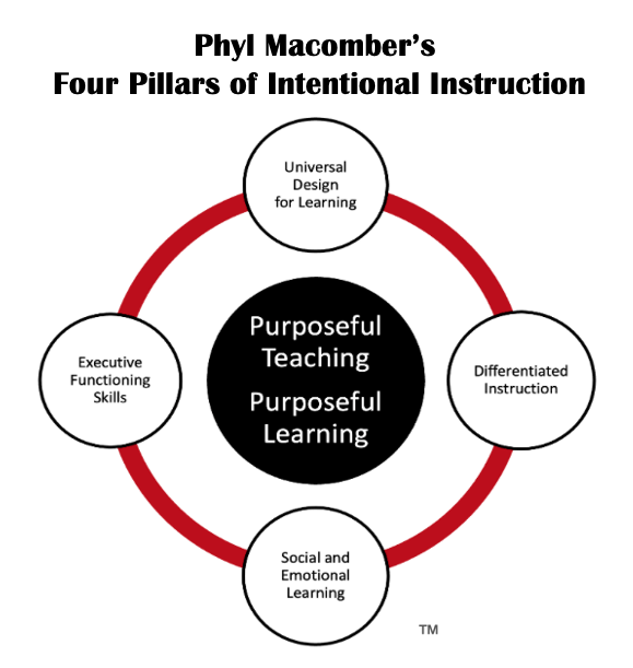 Phyl has consulted with and trained thousands of educators, administrators, and parents around the world related to her Four Pillars of Intentional Instruction – Universal Design for Learning, Differentiated Instruction, Social and Emotional Learning, and Executive Functioning – to serve learners of all abilities in an inclusive environment.
