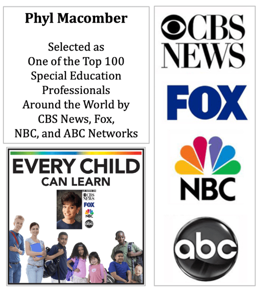 Phyl was recognized as one of the Top 100 Special Education Professionals Around the World by CBS News, Fox, NBC, and ABC networks, acknowledging her dedication to the field of education and her belief system that “Every Child Can Learn.”