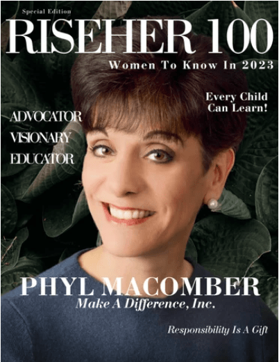 Some of Phyl Macomber’s volunteer work includes having collaborated with the television crew of ABC Extreme Makeover: Home Edition for a special needs learner and family in the state of Vermont.