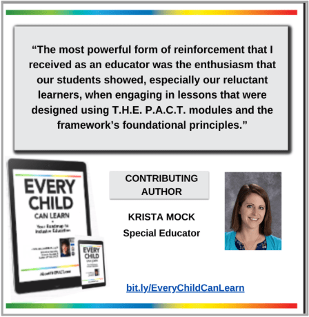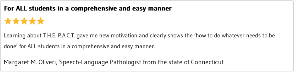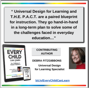 This language-based framework, as explained in detail in the book, The Power of T.H.E. P.A.C.T., is a blueprint for Universal Design for Learning and differentiated instruction. This easy-to-implement teaching approach solves the problem of having to reinvent the wheel to meet each student’s customized needs in any classroom.