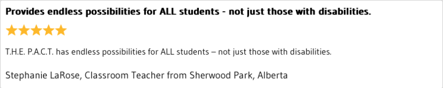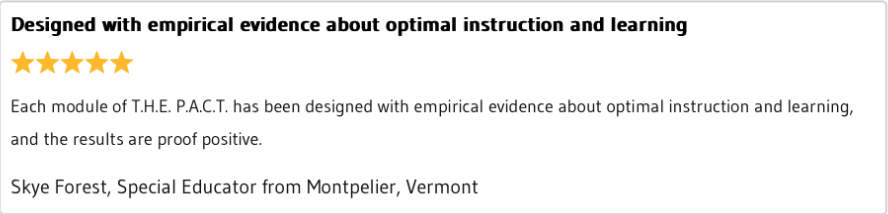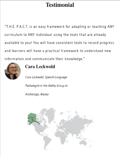 The Power of T.H.E. P.A.C.T. outlines detailed case studies of diverse learners and teams who have experienced the benefits of using this instructional delivery solution for academics, life skills, and social language content – resulting in high-quality instruction and high engagement in students with varying disabilities.