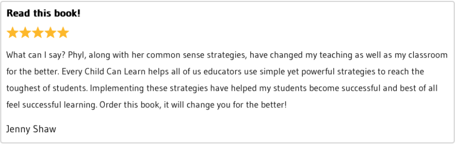 Every Child Can Learn: Your Roadmap to Inclusive Education, is a research-based “How-To” guide for teaching students of all abilities – from gifted to special needs. It has been referred to as “common sense education” by educators from around the globe.