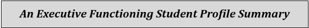 - An Executive Functioning Student Profile Summary