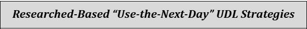 - Research-Based “Use-the-Next-Day” UDL Teaching Strategies